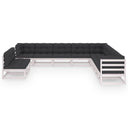 Salon de jardin 11 pcs avec coussins Blanc Bois de pin massif