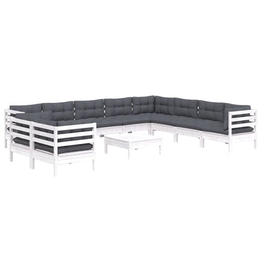 Salon de jardin 11 pcs avec coussins blanc bois de pin solide