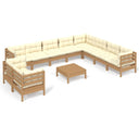 Salon de jardin 11 pcs avec coussins crème Bois de pin solide