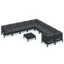 Salon de jardin 11 pcs avec coussins gris bois de pin