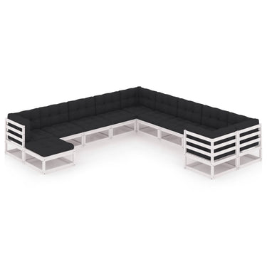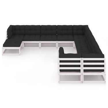 Salon de jardin 11 pcs avec coussins Noir Bois de pin massif