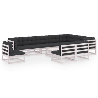 Salon de jardin 11 pcs avec coussins Noir Bois de pin massif