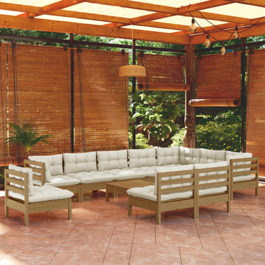 Salon de jardin 11 pcs avec coussins blanc bois de pin solide