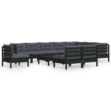 Salon de jardin 11 pcs avec coussins Noir Bois de pin solide
