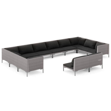Salon de jardin 12 pcs avec coussins Résine tressée Gris foncé