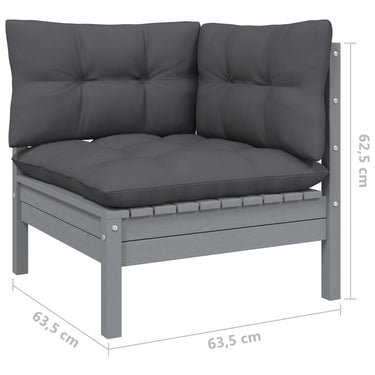 Salon de jardin 13 pcs avec coussins gris bois de pin