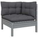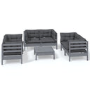 Salon de jardin 7 pcs avec coussins gris bois de pin massif
