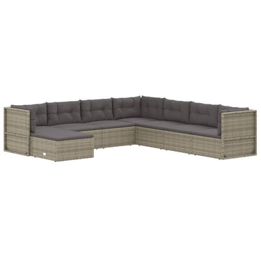 Salon de jardin 8 pcs avec coussins Gris Résine tressée