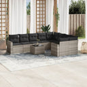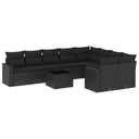 Salon de jardin 9 pcs avec coussins noir résine tressée