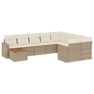 Salon de jardin avec coussins 10 pcs beige résine tressée
