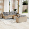 Salon de jardin avec coussins 10 pcs beige résine tressée