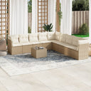 Salon de jardin avec coussins 10 pcs beige résine tressée