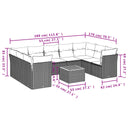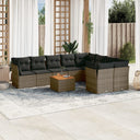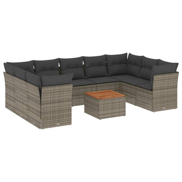 Salon de jardin avec coussins 10 pcs gris résine tressée