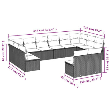 Salon de jardin avec coussins 12 pcs marron résine tressée