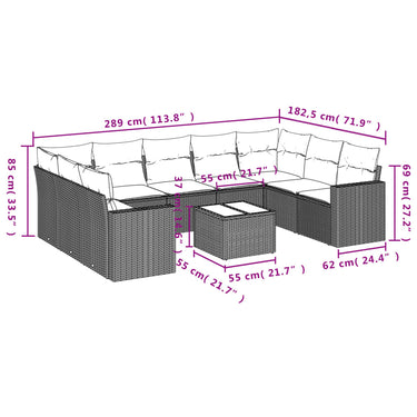 Salon de jardin avec coussins 9 pcs marron résine tressée