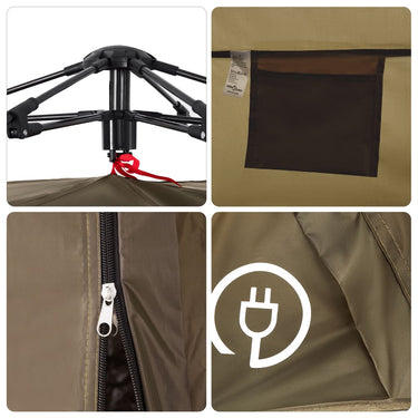Cette tente de pêche est parfaite pour créer de l'ombre et de protection contre les rayons UV nocifs du soleil lors de la pêche. Conception imperméable à l'eau tout autour : cette tente de camping, fabriquée en polyester avec un revêtement PU, est imperméable et résistante au vent. Les coutures étanches empêchent efficacement l'infiltration de l'eau de pluie, tandis que le tapis de sol robuste contribue à maintenir l'intérieur sec et confortable.Système de dégagement rapide : installez la tente sans effort grâce au système de dégagement rapide ! Posez la tente, étendez les poteaux pré-assemblés jusqu’à ce qu’ils s’enclenchent, et le tour est joué !Accès facile : la porte à fermeture éclair permet un accès facile. Vous pouvez l’enrouler et la fixer à l’aide des bascules de porte. Elle favorise également la circulation de l’air et fournit beaucoup de lumière naturelle.Accès pratique au cordon électrique : le E-port vous permet de connecter facilement une rallonge à votre tente à partir d'une source d'alimentation externe.Légère et portable : le design pliable et léger vous permet d'emballer facilement la tente et de la ranger dans le sac de transport inclus pour la transporter facilement. Attention :Tenir toutes les flammes et les sources de chaleur loin du tissu de ce produit.