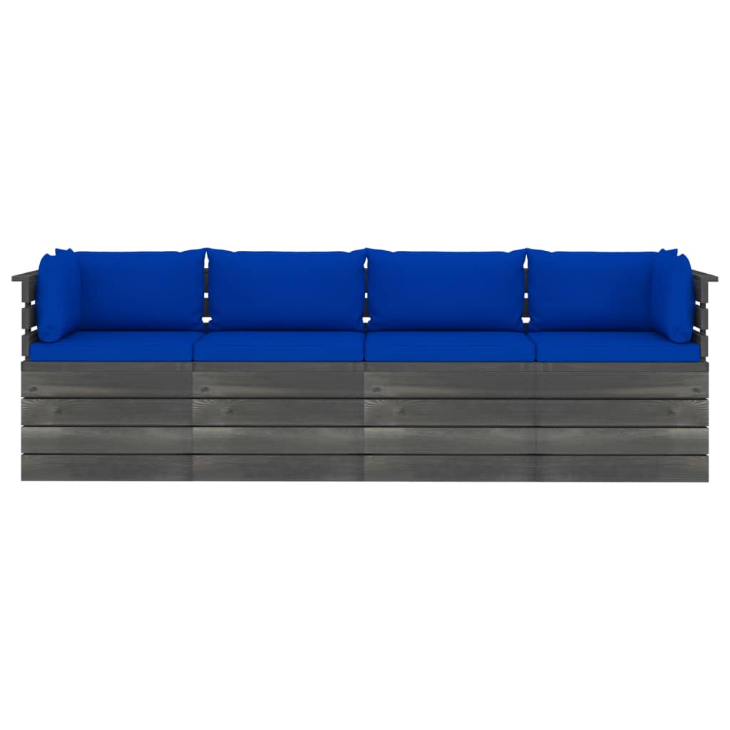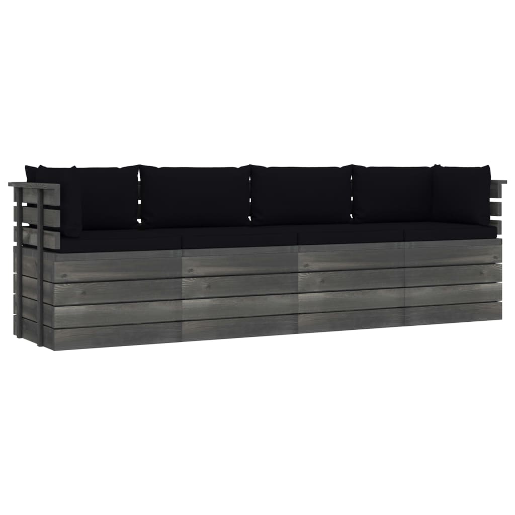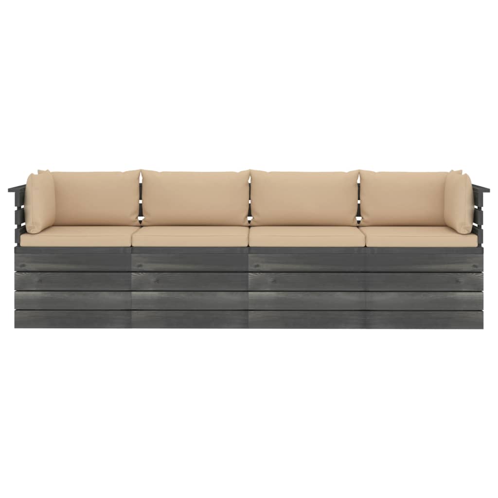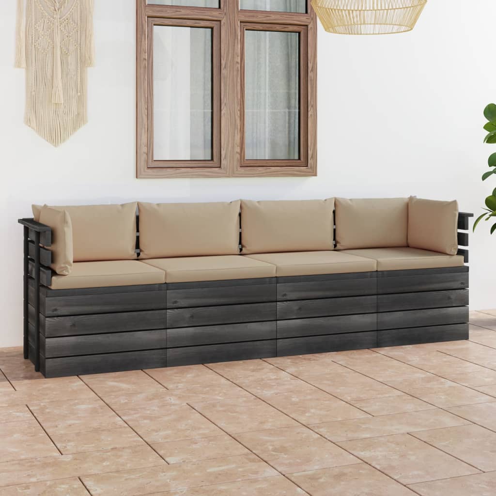 Tuinbank 4-zits met kussens pallet massief grenenhout