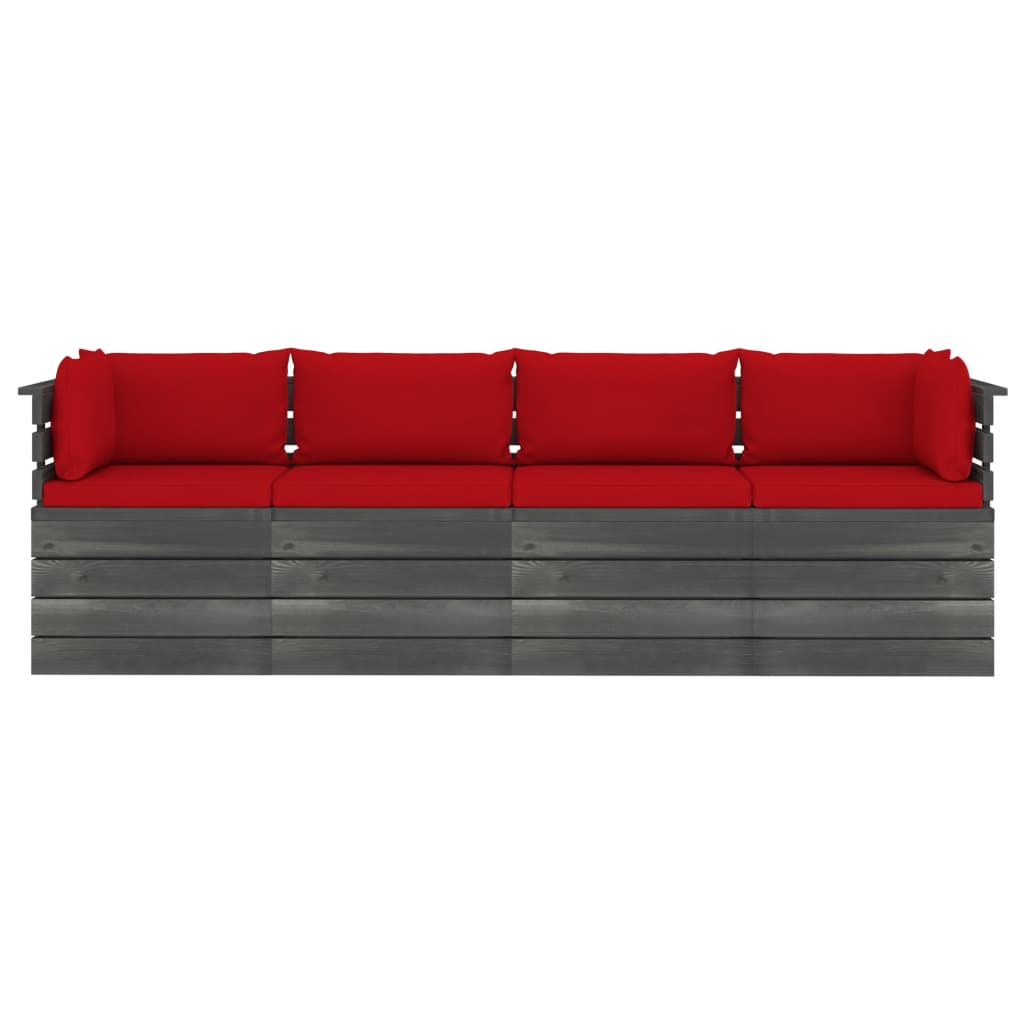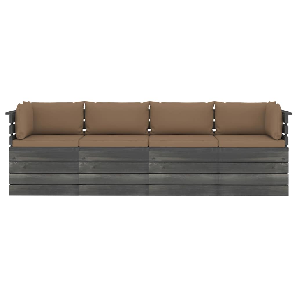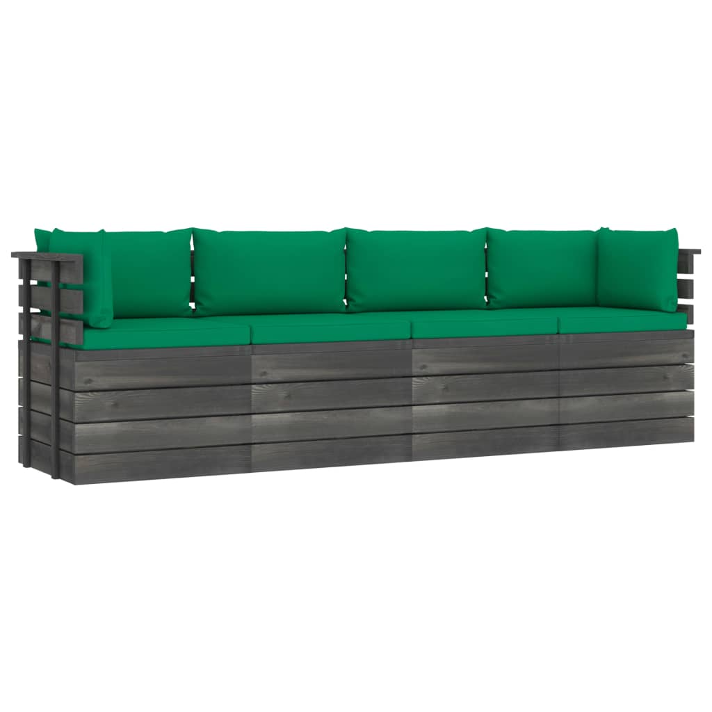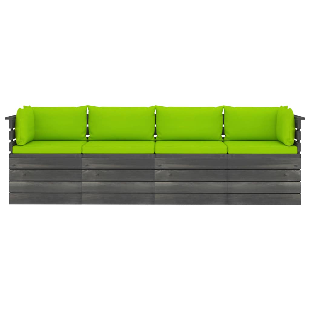 Tuinbank 4-zits met kussens pallet massief grenenhout