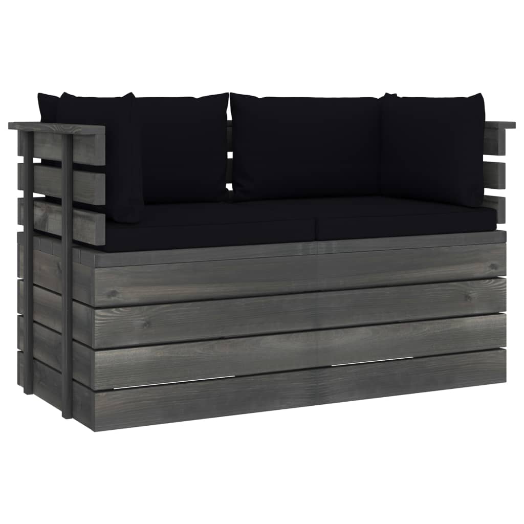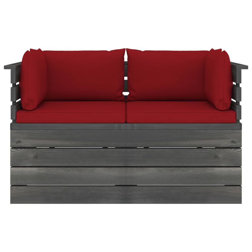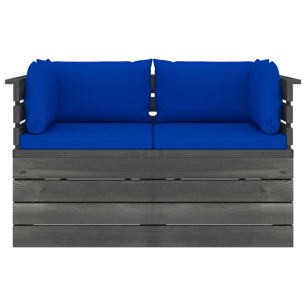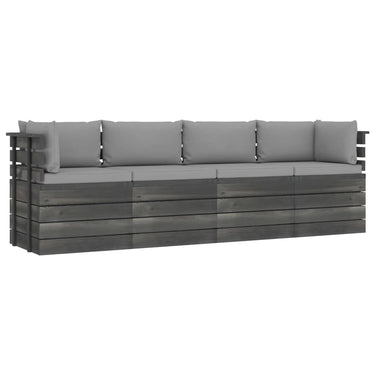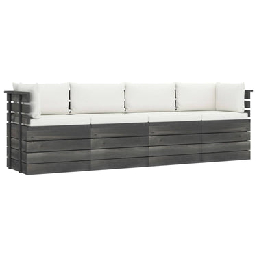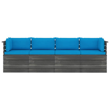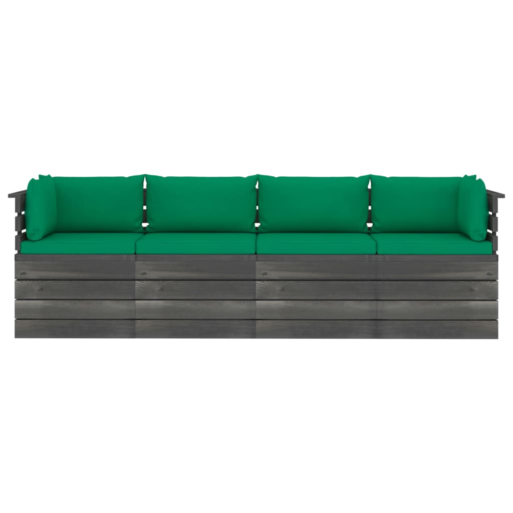 Tuinbank 4-zits met kussens pallet massief grenenhout