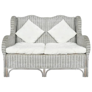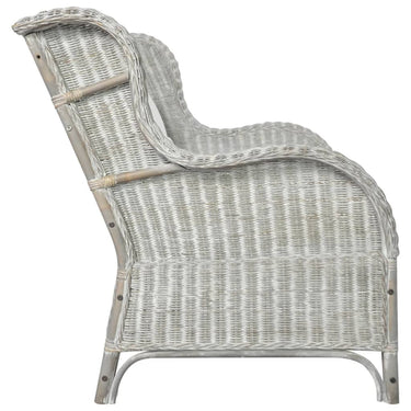 Canapé 2 places Gris Rotin naturel et lin