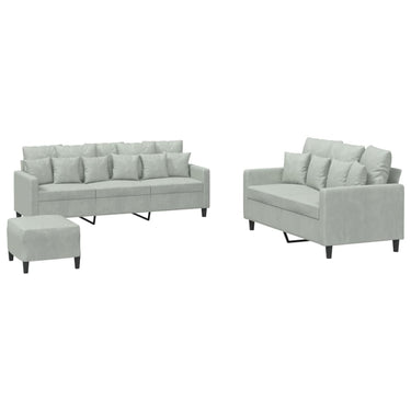 Cet ensemble de canapés est un excellent endroit pour discuter, lire, regarder la télévision ou simplement vous détendre. Il est destiné à être un point central de votre maison. Velours doux : le velours est un tissu doux et confortable, agréable au toucher.Structure robuste et stable : la structure en contreplaqué et en métal du canapé assure robustesse et stabilité. Expérience d'assise confortable : le canapé est très confortable avec le siège, les accoudoirs et les oreillers de dossier bien rembourrés.Pouf polyvalent : ce repose-pied convient pour reposer vos pieds lorsque vous êtes allongé dans un canapé ou pour vous offrir un siège supplémentaire dans votre pièce. De plus, le design simple et la taille compacte le rendent idéal pour presque tous vos espaces de vie.