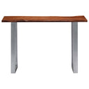 Cette table console au style industriel et décontracté s'intégrera parfaitement dans votre maison ou bureau. Le dessus de table est en bois d'acacia massif et robuste. Ses pieds métalliques uniques en forme de U, recouverts d'un revêtement en poudre, ajoutent au style industriel et rendent la table extrêmement stable. De plus, le bord du bois qui suit la forme naturelle de l'arbre rehausse la beauté de la table. La table console est facile à assembler. Veuillez noter que le bois est un produit naturel et peut présenter des imperfections.