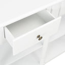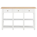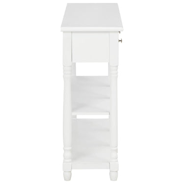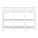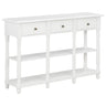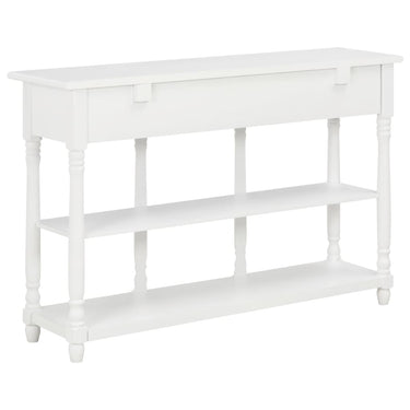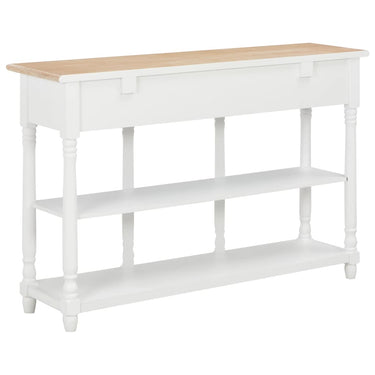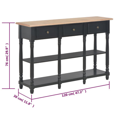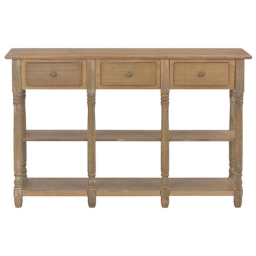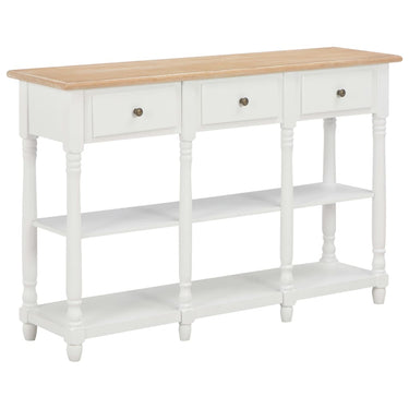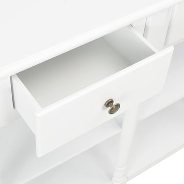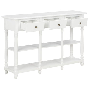 Ajoutez une touche d'élégance à votre décoration intérieure avec notre table console classique ! Fabriquée en MDF et en bois de pin solide, cette table console sera un excellent supplément à votre décoration intérieure. Elle peut également être utilisée comme table d'appoint ou buffet. La table a un dessus de table en MDF solide sur lequel vous pouvez placer des objets décoratifs tels que des corbeilles à fruits ou des vases. Les pieds en bois de pin solide garantissent la stabilité et la durabilité, assurant des années de service. De plus, les 3 tiroirs offrent un espace suffisant pour garder toutes sortes d'objets plus petits organisés et à portée de main. Les 2 étagères offrent un espace supplémentaire pour ranger vos chaussures et autres effets personnels.