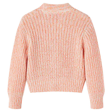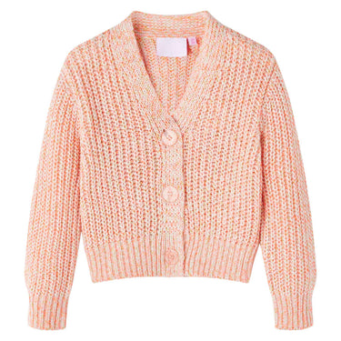 Ce cardigan pour enfant possède des manches longues, un col V décolleté et se ferme par une rangée de boutons. Ce cardigan pour enfants est tricoté avec une matière douce composée de 60 % de coton, 21 % de polyester et 19 % d'acrylique, qui offre plus de chaleur et de confort. Ce cardigan court, majoritairement en coton, présente des bords côtelés sur l'ourlet et les manches.
