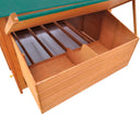 Ce joli poulailler en bois est un choix parfait pour nourrir vos poules et les garder à l'aise. Le poulailler a été conçu avec une fenêtre à l'avant pour permettre à l'air frais de circuler. Elle comporte deux nichoirs, tous deux avec un toit qui peut être ouvert pour ramasser des œufs. Le bac inférieur peut être retiré pour un nettoyage facile. La porte est verrouillable depuis l'extérieur avec un loquet. Fait en pinède de haute qualité, le poulailler est durable. Le tissu vert étanche sur les toits protège de la pluie, créant des endroits chauds et confortables pour se reposer à l'intérieur de la cabane.