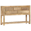 Ce buffet en bois dégage un charme intemporel qui sera un supplément accrocheur à votre décoration intérieure. Cette table console est faite de bois solide de récupération provenant des solives, des planchers et des poutres de soutien des vieux bâtiments démolis. Elle peut comprendre différents types de bois comme le pin, le teck, le hêtre, le chêne, le cèdre, le bois de manguier, l'acacia, etc. Cela signifie que le bois de récupération conserve les caractéristiques de ces différents types de bois. Le bois de récupération est déjà vieilli, érodé et séché, donc il ne rétrécit et ne se plie pas. Le savoir-faire de qualité supérieure et l'élégant grain de bois font de chaque pièce de table d'entrée une pièce distinctive et légèrement différente l'une de l'autre. Cette table d'appoint comprend 5 tiroirs et 1 étagère, offrant un espace de rangement pratique pour vos vêtements, vos livres, ainsi que divers autres articles. Remarque importante : Les couleurs et le grain du bois peuvent varier d'une pièce à l'autre, ce qui rend chaque commode unique. La livraison est aléatoire, ce qui garantit l'exclusivité et l'individualité de votre produit.