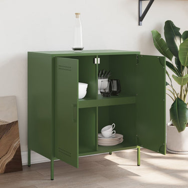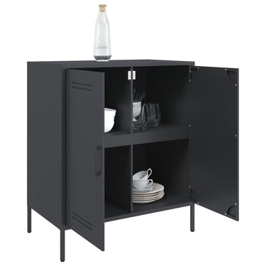 Ce buffet robuste de style industriel constitue un supplément intemporel à votre salon ou à votre chambre à coucher. Cadre robuste et stable : l'acier est solide, stable et durable, ce qui en fait un choix idéal pour un large éventail d'applications, de la fabrication de meubles à la construction.Grand espace de rangement : ce buffet est doté de 4 compartiments, ce qui offre un grand espace de rangement pour garder vos différents articles essentiels quotidiens bien organisés et facilement accessibles. Facile à nettoyer : l'armoire est facile à nettoyer à l'aide d'un chiffon humide et nécessite peu d'entretien.Porte pratique : gardez votre espace sans encombrement en cachant vos articles essentiels derrière les portes de l'armoire de rangement.Attention :Pour éviter qu'il ne bascule, ce produit doit être utilisé avec le dispositif de fixation murale fourni.