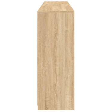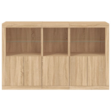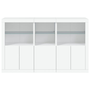 Décorez votre pièce avec ce buffet moderne avec éclairage LED, il s'harmonise facilement avec les meubles de tout style de votre maison. Matériau durable : le bois d'ingénierie est d'une qualité exceptionnelle avec une surface lisse et présente également résistance, stabilité et résistance à l'humidité.Lumières LED RVB : le buffet est équipé de lumières LED RVB vibrantes. Avec divers menus personnalisables, vous pouvez changer sans effort la couleur des lumières et même les régler automatiquement. Ces lumières LED renforcent non seulement l'aspect contemporain du buffet, mais aussi son attrait pour la mode.Grand espace de rangement : l'armoire de rangement offre beaucoup d'espace pour garder vos objets du quotidien bien rangés et facilement accessibles.Fonction d'exposition : la partie supérieure robuste de l'armoire d'entrée est idéale pour exposer des objets décoratifs, des cadres photo ou des plantes en pot.Porte pratiques : gardez vos essentiels à l'abri de la poussière en les cachant derrière les portes de l'armoire latérale. Bon à savoir :Ce produit est doté d'un connecteur USB qui nécessite une source d'alimentation USB de 5V certifiée (non incluse). Attention :Pour éviter qu'il ne soit renversé, ce produit doit être utilisé avec le dispositif de fixation au mur fourni.