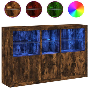Buffet avec lumières LED chêne fumé 162x37x100 cm