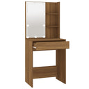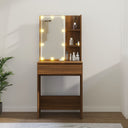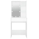 Dotée de lignes droites raffinées et d'une forme asymétrique soulignant un style unique, cette coiffeuse ne manquera pas de faire tourner les têtes ! Matériau durable : le bois d'ingénierie est d'une qualité exceptionnelle avec une surface lisse et présente également résistance, stabilité et résistance à l'humidité.Lumière LED : la table cosmétique dispose d'ampoules LED avec USB, qui sont faciles à changer de mode du blanc chaud au blanc froid. Les ampoules LED autour du miroir illuminent également votre beauté.Grand espace de rangement : cette table de maquillage est dotée d'étagères ouvertes sur la table, d'un tiroir et d'une armoire latérale, offrant ainsi un espace de rangement suffisant pour garder les éléments essentiels bien organisés et à portée de main. Attention :Afin d'éviter qu'il ne bascule, ce produit doit être utilisé avec le dispositif de fixation murale fourni.