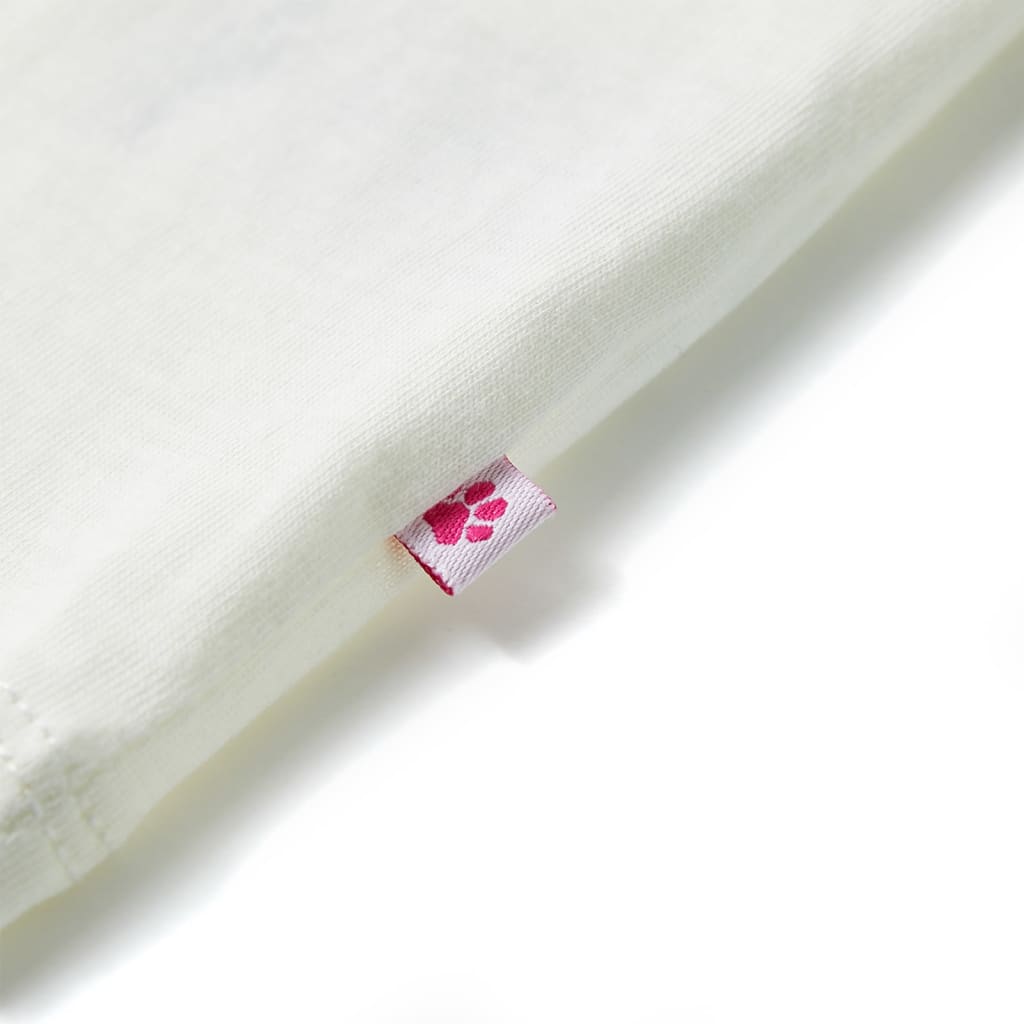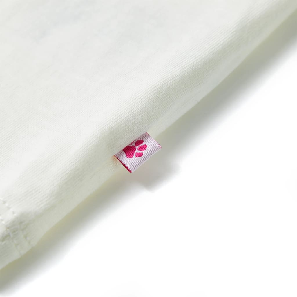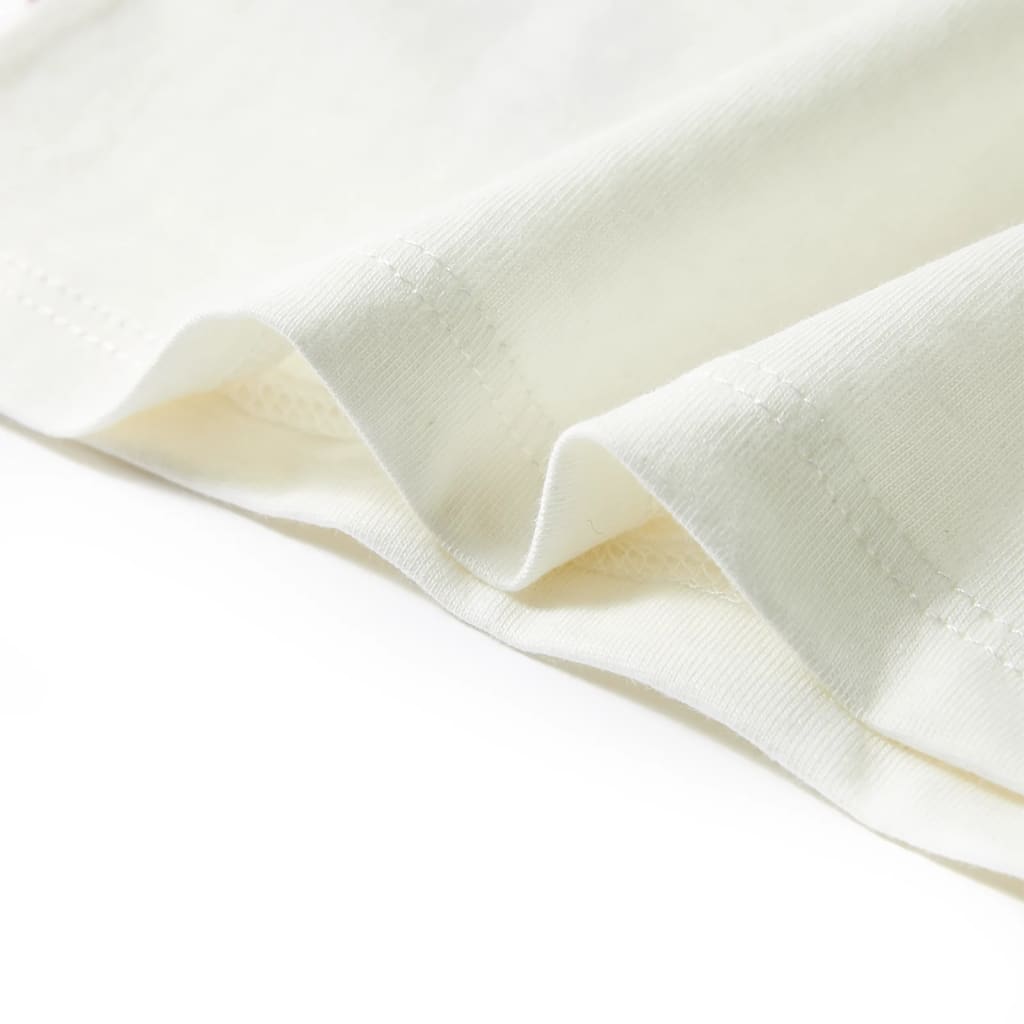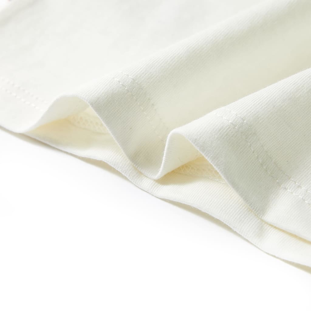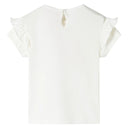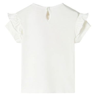 Cette chemise enfant possède des manches courtes, une encolure ronde et un modèle droit. Cette chemise pour enfants présente un motif avec des volants sur les manches. La chemise pour enfants à manches courtes est composée à 100 % de coton, ce qui la rend douce et confortable.