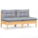 Canapé 2 places de jardin et coussins gris Bois de pin solide