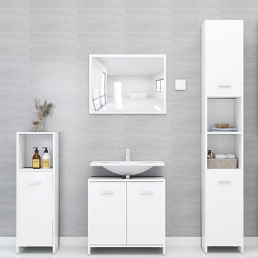 Cet ensemble de meubles de salle de bain de 4 pièces, doté d'un espace de rangement spacieux, est un supplément chic et intemporel à toute salle de bain ou toilettes. Matériau durable : le bois d'ingénierie est d'une qualité exceptionnelle avec une surface lisse et présente également résistance, stabilité et résistance à l'humidité.Grand espace de rangement : ces armoires de salle de bains offrent diverses options de rangement et un espace supplémentaire pour ranger les objets dans votre salle de bains. Design élégant : les lignes épurées et le design élégant font que ce meuble de salle de bain s'intègre parfaitement dans votre salle de bain. Le miroir ajoute également une excellente apparence à votre décor intérieur. Poignées pratiques : il y a une poignée sur chaque porte pour une meilleure ouverture et fermeture. Surface facile à nettoyer : l'unité d'évier de salle de bain est facile à nettoyer avec un chiffon humide. Attention :Afin d'éviter qu'il ne bascule, ce produit doit être utilisé avec le dispositif de fixation murale fourni. Remarque :Chaque produit est livré avec un manuel de montage dans la boîte pour un montage facile.Les vis et les chevilles pour l'intérieur du mur ne sont pas incluses. Recherchez et utilisez des vis et des chevilles adaptées à vos murs. Si vous n'êtes pas sûr, demandez conseil à un professionnel. Lisez et suivez attentivement chaque étape des instructions.Le panneau latéral de l'armoire haute se compose de deux parties connectées.