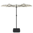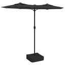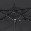 Cet élégant parasol de jardin à deux têtes est un choix parfait pour créer de l'ombre et vous protéger des rayons UV nocifs. Matériau durable : fabriqué en polyester anti-UV et anti-décoloration, le parasol de jardin vous offre une protection optimale contre le soleil et est facile à nettoyer.Cadre robuste : le solide mât en fer enduit de poudre, ainsi que les nervures durables, rendent le parasol de jardin très stable et robuste.Mécanisme à manivelle : grâce au mécanisme de la manivelle, le parasol s'ouvre et se ferme facilement.Base solide : la base avec le sac à sable assure la solidité et la stabilité du parasol, même en cas de vent fort ou de forte pluie.