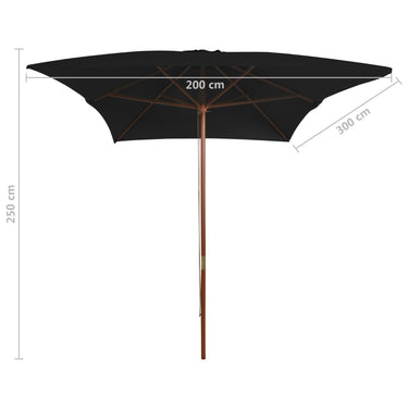 Parasol d'extérieur avec mât en bois 200 x 300 cm taupe