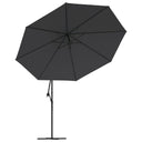 Cet élégant parasol suspendu est parfait pour créer de l'ombre et vous protéger des rayons UV nocifs. Fabriquée en polyester anti-UV et anti-décoloration, la couverture de parasol vous offre une protection optimale contre le soleil et est facile à nettoyer. Il comporte une base croisée robuste pour ajouter de la stabilité. Le design exclusif de ce parasol vous permet d'incliner le parasol pour bloquer le soleil qui se dirige vers l'horizon. Le mât en métal résistant, ainsi que les 8 nervures durables, rendent le parasol très stable et durable. Notre parasol de jardin peut être ouvert et fermé facilement grâce au mécanisme à manivelle. L'article est facile à assembler. Veuillez noter que nous vous recommandons de traiter le tissu du parasol avec un spray imperméabilisant s'il est soumis à des fortes précipitations.