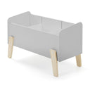 Le coffre à jouets est fabriqué en MDF laqué vert en combinaison avec des pieds en pin massif et présente des coins arrondis. Grâce au style scandinave, cette commode ajoute du style et de la fonctionnalité à la chambre de bébé.