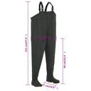 Restez au sec lorsque vous pêchez avec notre pantalon échassier. Ce tissu exceptionnel en polyester enduit est confortable et souple à l'intérieur, tout en étant robuste à l'extérieur. Grâce à ses coutures cousues et scellées, ainsi qu'aux bottes attachées, nos pantalons échassier sont 100 % imperméables. De plus, les bretelles vous permettent d’adapter parfaitement le pantalon de pêche. Remarque : Pour un ajustement parfait, veuillez vérifier attentivement le tableau des tailles avant d'acheter. Si vos pieds sont larges ou si vous devez porter des chaussettes épaisses, veuillez choisir UNE TAILLE PLUS GRANDE que d'habitude.