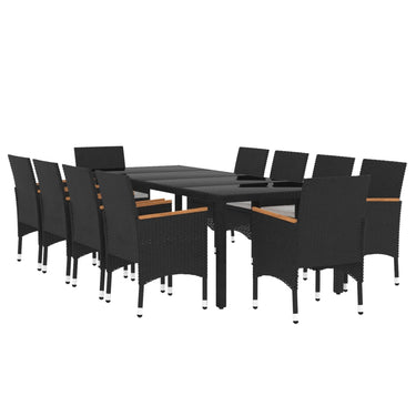 Ensemble à dîner de jardin 11 pcs Résine tressée Noir