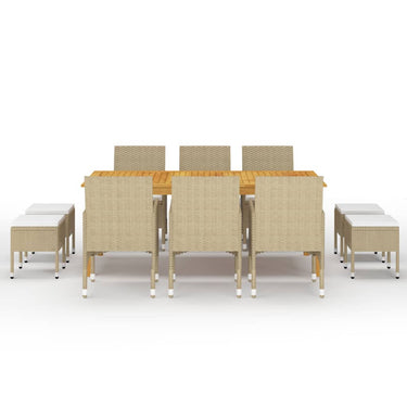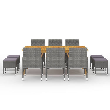 Créez une esthétique convaincante et uniforme dans votre espace extérieur avec cet ensemble de salle à manger de jardin ! La table de salle à manger est en bois d’acacia massif avec une finition à l’huile, ce qui la rend stable, durable et facile à entretenir. Dotés d’un cadre en acier enduit de poudre recouvert de résine tressée résistante aux intempéries, ces chaises et tabourets sont robustes et faciles à nettoyer. Conçue avec un dossier et des accoudoirs incurvés, la chaise à dîner a une forme plus ergonomique pour un confort maximal. Chaque siège est doté d'un coussin rembourré amovible pour ajouter du confort pendant votre temps de détente. Remarque importante : Nous vous recommandons de couvrir l'ensemble de salle à manger pendant la pluie, la neige et le gel pour une utilisation durable.