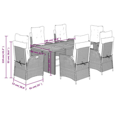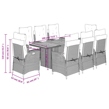 Ensemble à manger de jardin 9pcs coussins noir résine tressée