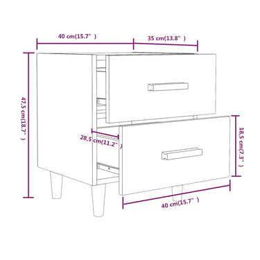 Tables de chevet 2 pcs 40x35x47,5 cm couleur chêne