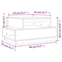 Ajoutez une touche d'élégance à votre décoration intérieure avec cette élégante table basse en bois. Bois de pin massif : le bois de pin massif est un matériau naturel magnifique. Le bois de pin a un grain droit et les nœuds donnent au matériau son aspect caractéristique et rustique.Cadre stable : le cadre en bois de la table d'appoint assure robustesse et stabilité.Grand espace de rangement : ce bout de canapé offre un grand espace de rangement pour garder vos essentiels bien organisés et à portée de main.Dessus spacieux : le dessus spacieux de la table de salon est parfait pour placer vos boissons, aliments et autres objets décoratifs. Remarque :Chaque produit est livré avec un manuel de montage dans la boîte pour un montage facile.
