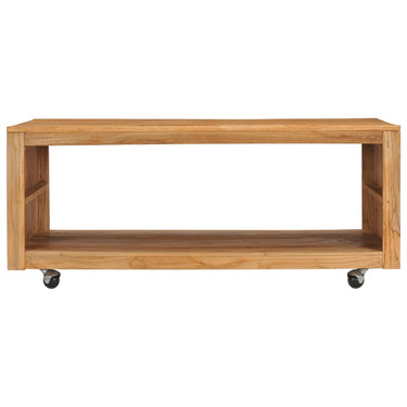 Empruntant son design épuré à des tables populaires de style rustique, cette table basse capture merveilleusement l’esprit du minimalisme contemporain. Cette table en bois est construite en bois de teck massif, offrant un support de base solide et durable. La finition à l’huile naturelle assure une surface lisse et est facile à nettoyer et à entretenir régulièrement. Le fond de la table est équipé d’une étagère pour stocker d’autres choses, et les roues mobiles aident dans le transport et le déplacement.