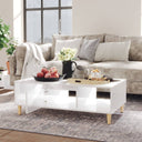Table basse blanc brillant 103,5x60x35 cm bois d'ingénierie