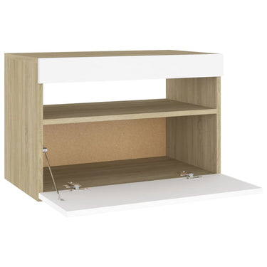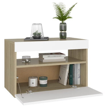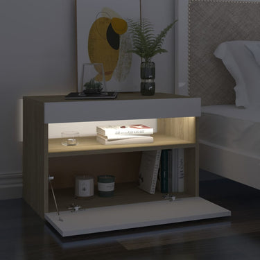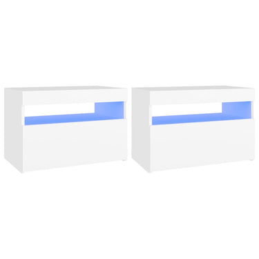 Tables de chevet avec lumières LED 2 pcs blanc 60x35x40 cm